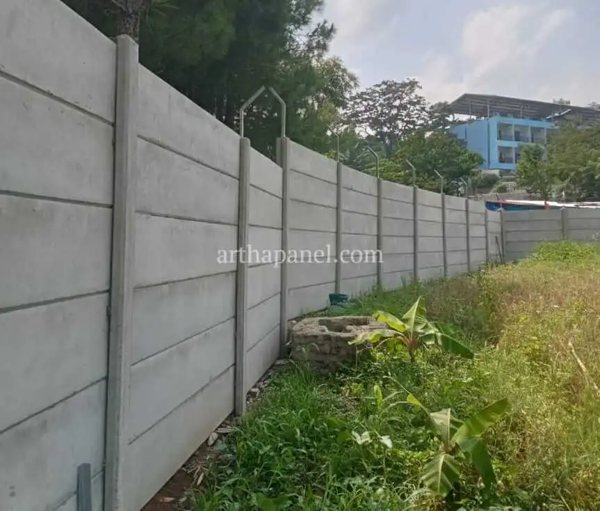 Pagar panel beton dibuat dari material beton berkualitas yang melalui proses pracetak di pabrik, menjadikannya sangat kuat dan tahan terhadap benturan maupun cuaca ekstrem. -